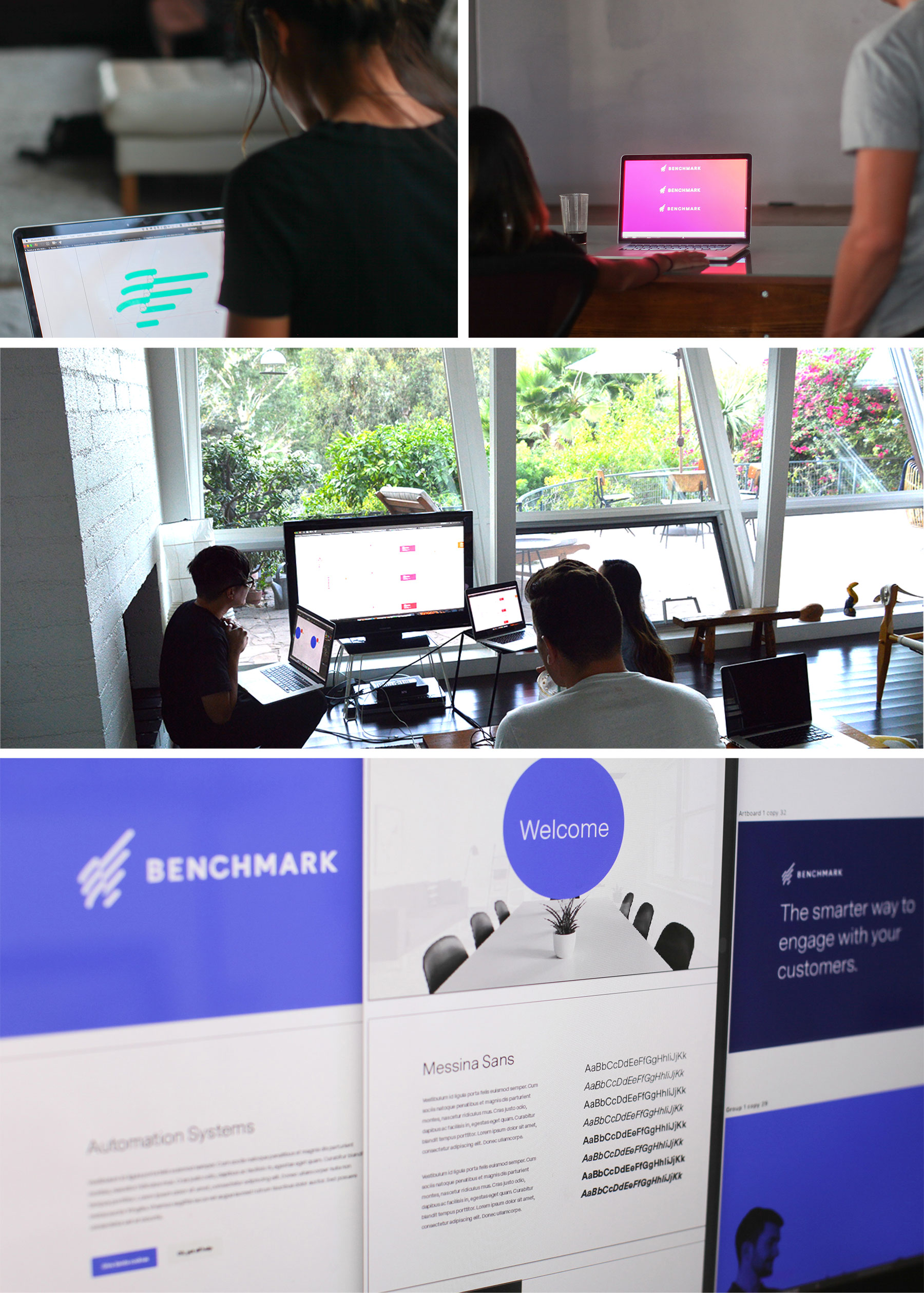 สำหรับโลโก้และรูปแบบตัวอักษร เราตัดสินใจใช้ซานเซอริฟ เมื่อใดก็ตามที่เราเห็น 'Benchmark' เขียนด้วย serif มันรู้สึกจริงจังเกินไปและไม่เข้ากับคุณลักษณะของเราเช่นกัน