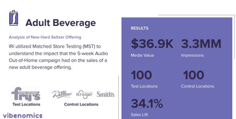 แนวทางที่ขับเคลื่อนด้วยเทคโนโลยีของ Vibenomics ช่วยให้ผู้ลงโฆษณาเข้าใจว่าเหตุใดการลงทุนของพวกเขาจึงได้รับบริการที่ดีขึ้นในสถานที่ที่มีของเสียจำกัดและเข้าถึงผู้ซื้อ ณ จุดซื้อ ความร่วมมือกับ IRI ของพวกเขาช่วยชี้แจงผลกระทบเชิงบวกที่โมเดล AOOH มีต่อการเพิ่มยอดขายและผลตอบแทนจากค่าโฆษณา