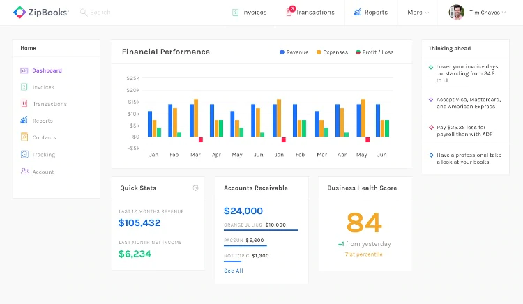 ZipBooks ช่วยให้ทุกอย่างเรียบง่ายที่สุด ผลิตภัณฑ์นี้เน้นที่พื้นฐาน เช่น บัญชีลูกหนี้ ดังนั้นผู้ใช้จะไม่ต้องแปลกใจกับเมนูที่ซับซ้อนหรือคุณลักษณะที่ข่มขู่ แถลงการณ์และรายงานของ ZipBooks นั้นเรียบง่ายและสะอาดตาเช่นเดียวกัน โดยเน้นที่ข้อมูลสำคัญที่ผู้ประกอบการจำเป็นต้องใช้ในการดำเนินธุรกิจ