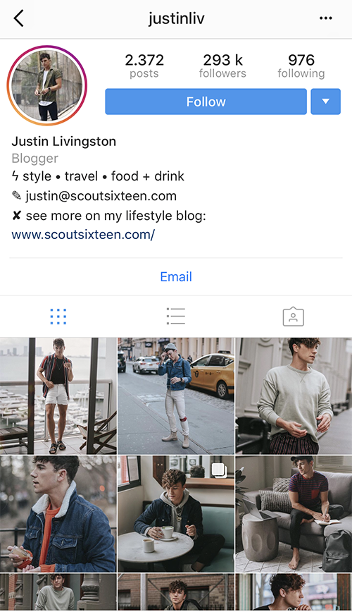 ครั้งหนึ่งเขาเคยใฝ่ฝันที่จะเป็นกูรูด้านแฟชั่นที่อาศัยอยู่ในเมือง ตอนนี้เขาเป็นหนึ่งใน Instagrammers ที่ได้รับความนิยมมากที่สุดที่คุณจะพบบน Instagram เคล็ดลับในการเป็นหนึ่งใน Instagrammers ยอดนิยมของเขาคือคุณต้อง "มีเสียงที่สม่ำเสมอ" ใช้ฟีดของคุณเพื่อแสดงแบรนด์ของคุณและสิ่งที่นำเสนอ ควรหมุนไปรอบ ๆ ธีมที่มีแนวคิดและควรบอกเล่าเรื่องราวเช่นคุณในฐานะนักการตลาด ใช้อย่างมีประสิทธิภาพและจะเพิ่มการเข้าชมฟีดของคุณ