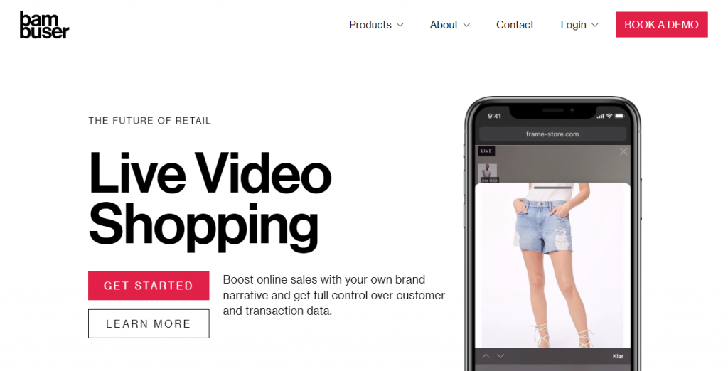 Bambuser เป็นแพลตฟอร์มการช็อปปิ้งวิดีโอที่ช่วยให้ผู้ค้าปลีกอีคอมเมิร์ซนำเสนอประสบการณ์การช็อปปิ้งวิดีโอสดบนเว็บไซต์ของพวกเขา คุณโปรโมตสินค้าและให้ผู้ซื้อเพิ่มสินค้าลงในรถเข็นได้โดยไม่ต้องออกจากสตรีมแบบสด Bambuser มอบประสบการณ์การช็อปปิ้งโดยตรงที่ผู้ซื้อสามารถสนทนากับโฮสต์ในแบบเรียลไทม์ นอกจากนี้ยังมีตัวเลือกในการสตรีมสดแบบตัวต่อตัวด้วยการแสดงสินค้าและการเปรียบเทียบ คุณลักษณะการหยิบสินค้าลงรถเข็น และอื่นๆ