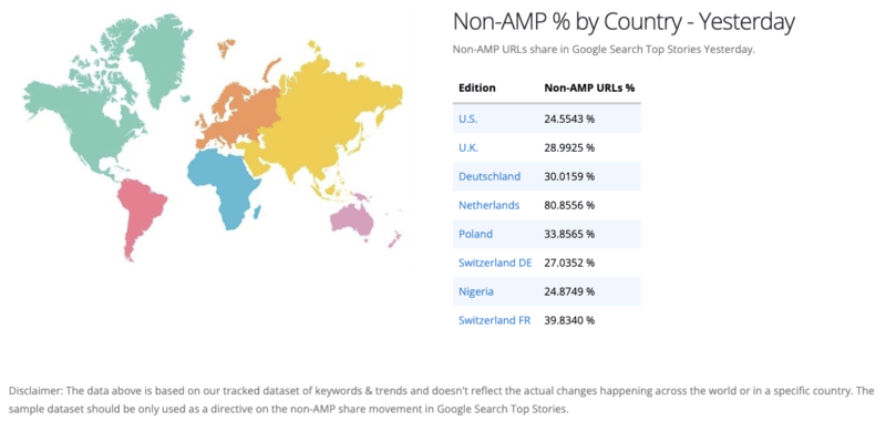 แม้ว่าการอัปเดตประสบการณ์ใช้งานหน้าเว็บจะไม่ส่งผลกระทบต่อ SEO บางส่วนที่คาดหวัง (Google ได้กล่าวไว้ว่า "ไซต์โดยทั่วไปไม่ควรคาดหวังการเปลี่ยนแปลงที่รุนแรง") แต่หน้าที่ไม่ใช่ AMP จะปรากฏในส่วนเรื่องเด่นในวันที่ 27 ตุลาคม พ.ศ. 2564 URL ที่ไม่ใช่ AMP คิดเป็น 24.6% ของเนื้อหาเรื่องเด่นในสหรัฐอเมริกาตามเครื่องมือ AMP Tracker ของ Newzdash ในบางประเทศ อัตราส่วนนี้อาจสูงกว่ามาก ในเนเธอร์แลนด์ อยู่ที่ 80.9% ในวันเดียวกัน