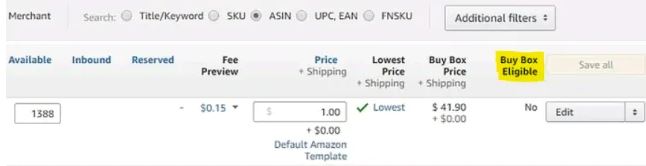 - สิทธิ์ในการซื้อกล่อง: ผู้ขายจะต้องมีสิทธิ์ซื้อกล่อง (ก่อนหน้านี้เรียกว่าผู้ขายที่โดดเด่น) สำหรับผลิตภัณฑ์เพื่อที่จะแข่งขันเพื่อชิงส่วนแบ่งของ Buy Box ที่โลภมากสำหรับการขายผลิตภัณฑ์นั้น ผู้ขายสามารถมีสิทธิ์ชนะ Buy Box สำหรับผลิตภัณฑ์บางรายการและไม่ใช่สำหรับผลิตภัณฑ์อื่นๆ ผู้ขายสามารถติดตามวิธีการที่รวดเร็วในการมีสิทธิ์ซื้อกล่องโดยใช้ Amazon FBA เพื่อให้มีสิทธิ์ Buy Box เมตริกอัตราข้อบกพร่องในการสั่งซื้อ อัตราการยกเลิก และอัตราการจัดส่งล่าช้าต้องอยู่ในสถานะดี