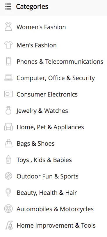 Mağazanızı kurmanın ilk kısmı, bir niş veya satacağınız stoksuz satış ürünlerini seçmektir. Nereden başlayacağınızı bilmiyorsanız, AliExpress'in sahip olduğu ürün kategorileri ile başlayın ve sizi en çok ilgilendiren veya en güvenli satış hissettiğinize göre seçenekleri listelemeye başlayın.