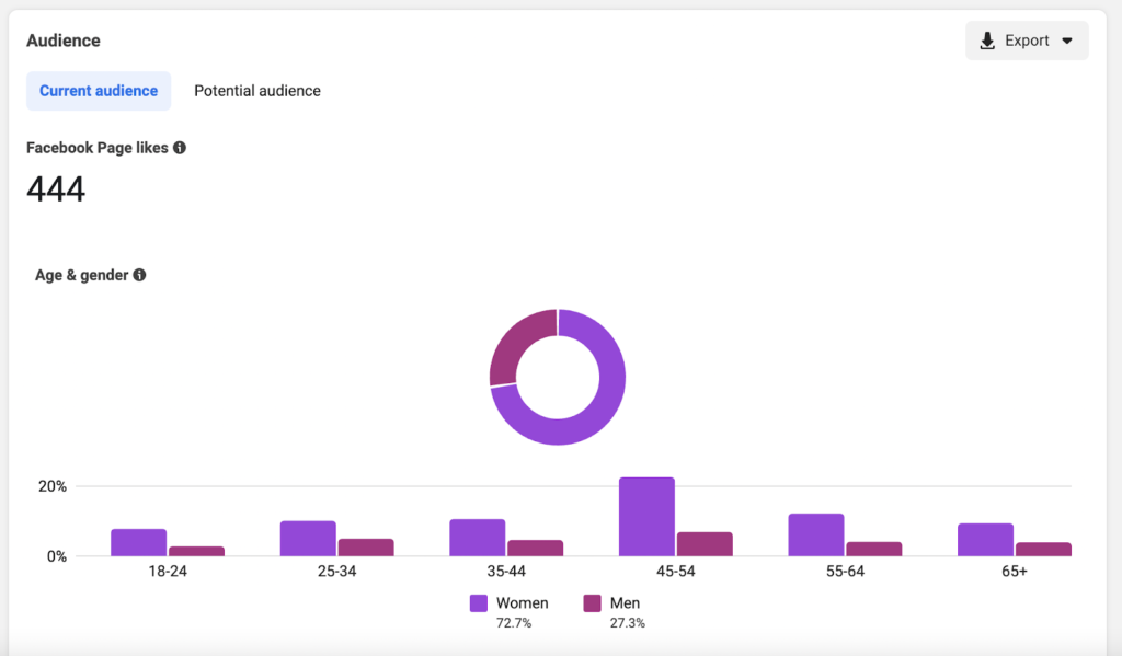 Meta Business Suite'in bir parçası olan Facebook Audience Insights, yalnızca hedef kitle verilerini değil, aynı zamanda Facebook işletme profili performansınızla ilgili eğilimleri ve ölçümleri de gösterir. Bu bilgilerle, aşağıdaki gibi kitle demografik bilgilerini görüntüleyebilirsiniz: