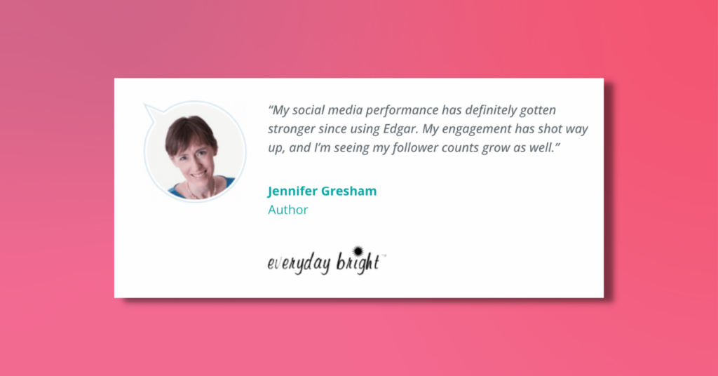 Edgar, sosyal medyanızın en iyi arkadaşıdır. İçeriğinizi planlar ve sınırsız bir İçerik Kitaplığı'na kaydeder, böylece yalnızca eskimeyen içeriği yeniden paylaşamazsınız, aynı zamanda gelecekte yeniden paylaşabilirsiniz.