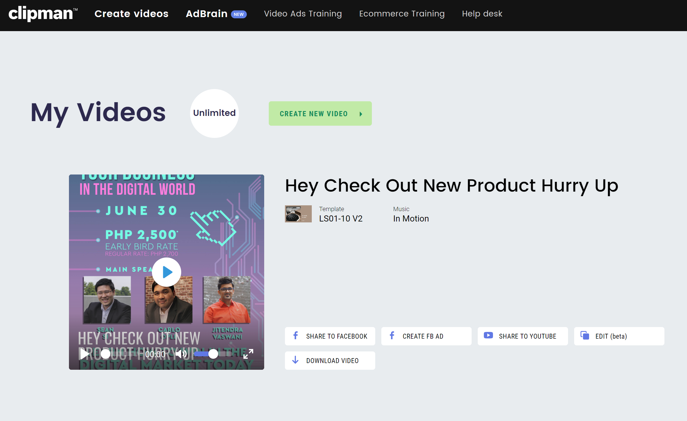 Bu paket, yüksek dönüşümlü, profesyonel kalitede video reklamlar oluşturmanın ve sınıflandırmanın tüm aşamalarında size yol gösteren bir yazılım ve bir eğitim kursu içerir. Clipman'ı video oluşturan diğer birçok yazılımdan ayıran şey, çok basit ve kullanımının kolay olmasıdır.
