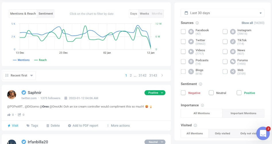- Marka bahsetmelerini izleyin : İnternet genelinde marka, ürün veya hizmetin bahsetmelerini izleyecek ve izleyeceksiniz. Bu, müşterilerin işletme hakkında söylediklerine ilişkin gerçek zamanlı içgörüler sağlayabilir ve bu da ürün geliştirme ve pazarlama ekiplerini bilgilendirebilir.