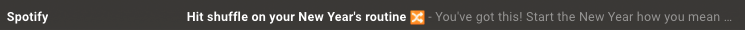 Emojilerin tek yeri konu satırı değil. Bazı markalar, bunları önizleme metnine dahil etmenin akıllıca yollarını bulur (konu satırının yanında görebileceğiniz küçük kopya parçası). Bununla birlikte, birçok pazarlamacı konu satırlarında hala emoji kullanıyor, bu da emojiyi seven konu satırınızın diğerlerinden çok farklı görünmeyebileceği anlamına geliyor - henüz pek çok marka bunları önizleme metnine dahil etmeyi denemedi.