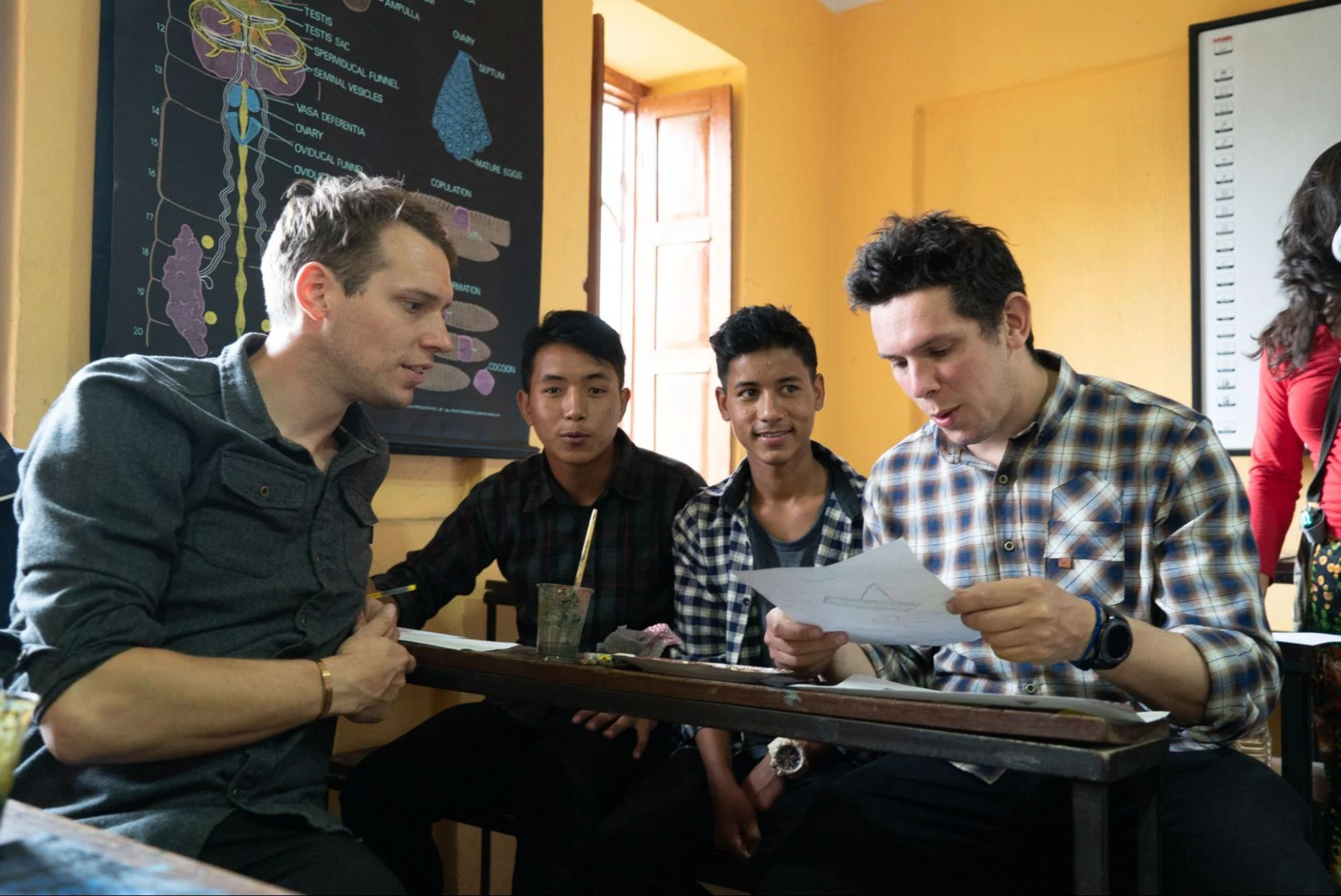 Temelde bunun gibi daha fazla parça yaptık. Temelde bitmek üzere olan bir projeyle de karşılaştık. Zaten var olan bir okuldu ve gelen paraları yoktu. Işıkları açmayı göze alamazlardı. Temelde birkaç yıl boyunca onlara fon sağlamaya yardımcı olduk. Bunu yaparken de nasıl çalıştıklarını öğreniyorduk.