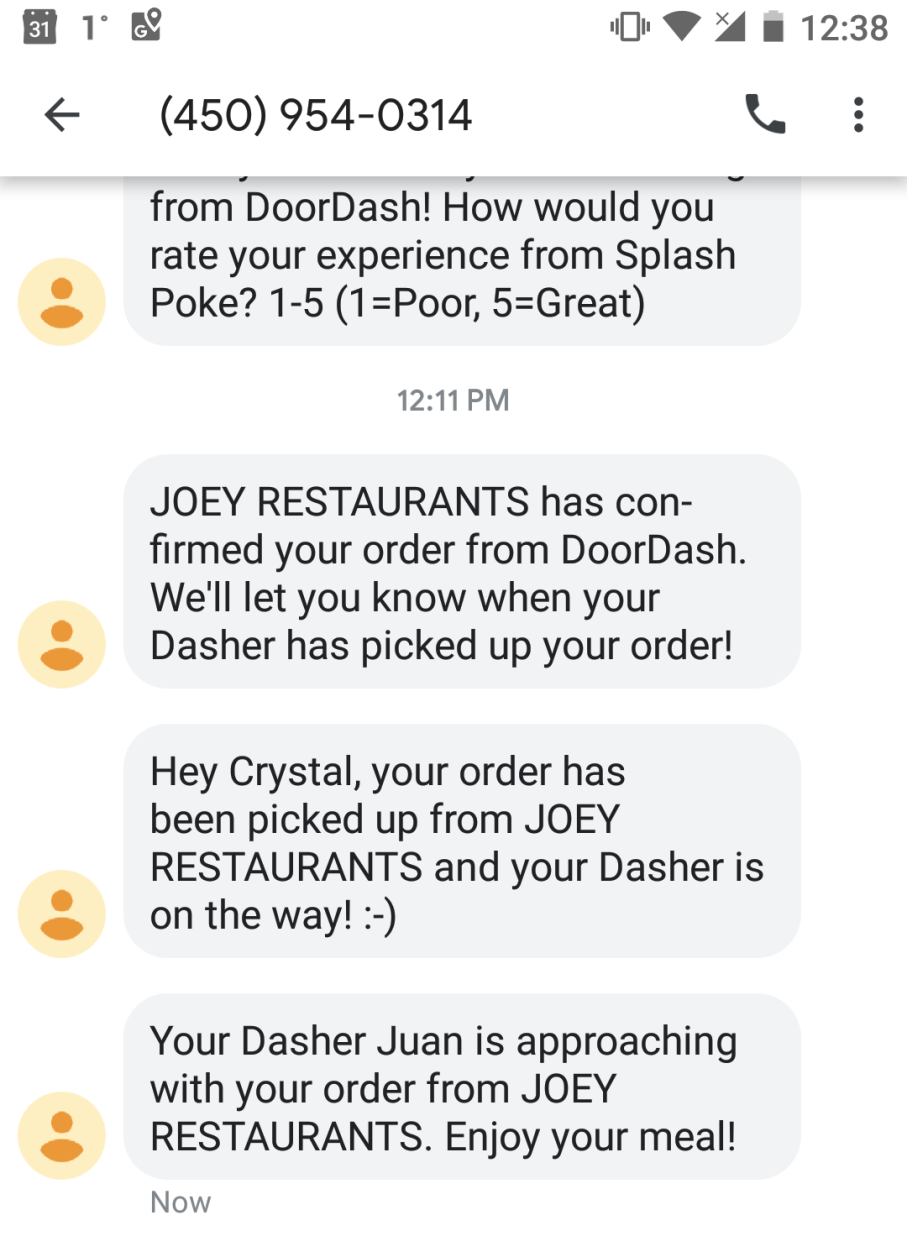 Doordash ayrıca ilgiyi satışa dönüştürmeye, siparişleri takip etmeye ve gerçek zamanlı müşteri hizmetleri sağlamaya yardımcı olmak için SMS öncü uyarılarına güvenir.