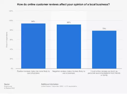 ABD müşterileri üzerinde yapılan bir anket , insanların yüzde 94'ünün olumlu yorumların ürün satın alma olasılıklarını artırdığını kabul ettiğini gösterdi.