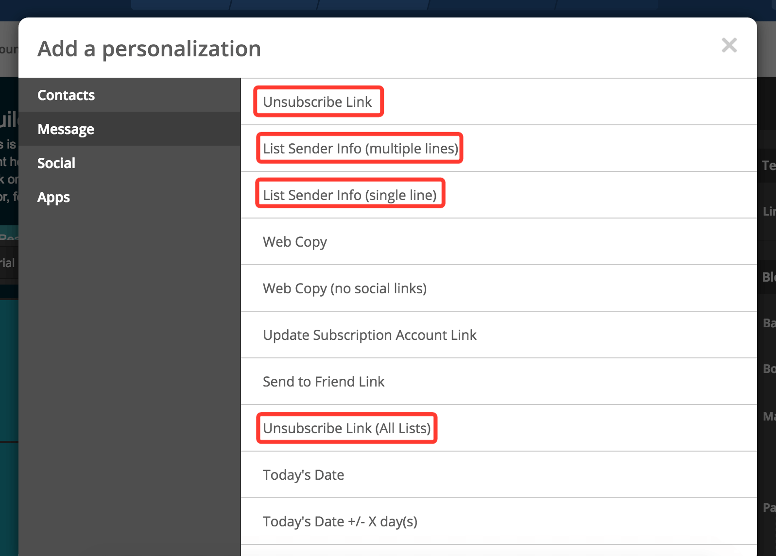 Tüm kampanyalar ve otomasyon e-postalarının bir abonelikten çıkma bağlantısı içermesi gerekir. ActiveCampaign'den gönderim yaparken yalnızca ActiveCampaign abonelikten çıkma bağlantılarına izin verilir.