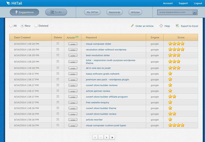Anahtar kelime araçları söz konusu olduğunda HitTail benzersizdir. HitTail, Google Anahtar Kelime Planlayıcı gibi yeni anahtar kelimeler bulmanız için size bir arama kutusu vermek yerine, mevcut web sitesi trafiğinizi analiz eder ve sıralamada iyi bir şansınız olduğunu düşündüğü anahtar kelimeleri otomatik olarak önerir.