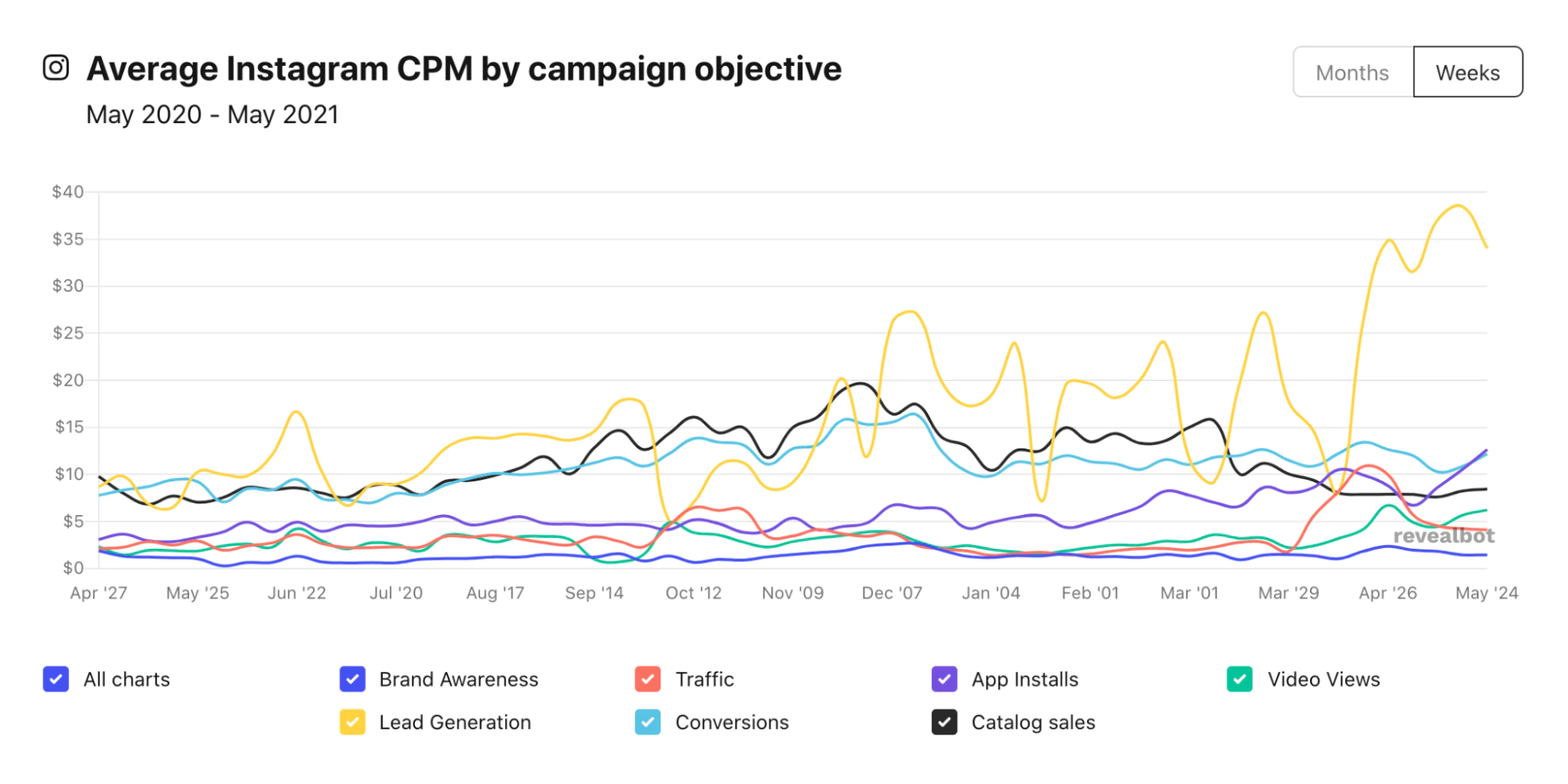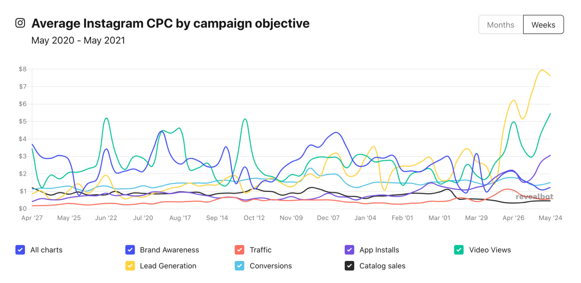 Revealbot tarafından yapılan araştırma, Instagram reklamlarının ortalama maliyetinin şu şekilde olduğunu gösteriyor: