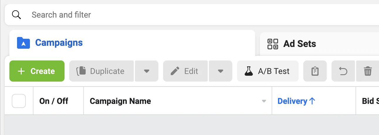 Reklam Yöneticisi'nde, Kampanyalar sekmesini ve ardından ekranın sol üst köşesine yakın bir yerde bulunan + Oluştur düğmesini tıklayın.
