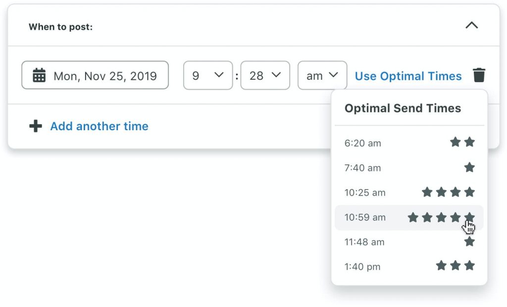 Ardından , önceden planlamak için içerik planlama araçlarını kullanın ve gönderilerinizi ideal zamanlarda otomatik olarak yayınlayın. Bu araçların çoğu, profilinize özel katılım verilerine dayalı olarak ne zaman gönderi yayınlayacağınız konusunda size öneriler bile sunar. Yayınlama programınızı optimize etmek için bu önerilerden en iyi şekilde yararlanın.