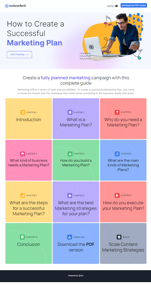 Pazarlama Planı Nasıl Oluşturulur bölümünde bölümleri diğer etkileşimli öğelerin yer aldığı bloklara ayırdık.