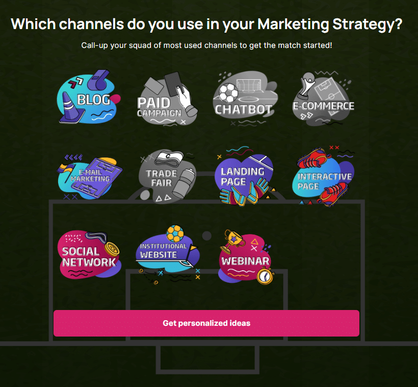 Ziyaretçiler, futbol antrenörlerine benzer şekilde çalıştıkları ana kanalları seçtikten sonra, önceki sayfada sağlanan girdilere dayanarak başarılı kampanyalar oluşturmak için kişiselleştirilmiş tavsiye ve öneriler alıyor.