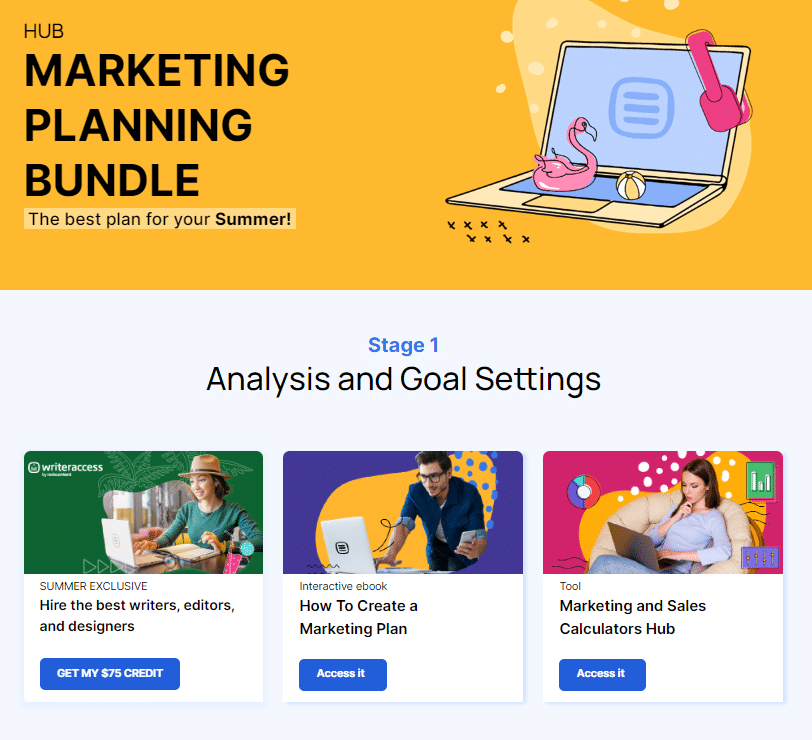 Bunun bir örneği, profesyonellerin içerik pazarlama üretimlerini ölçeklendirmelerine yardımcı olan serbest çalışma pazarımız WriterAccess'in 14 günlük denemesidir. Bu arada, yapay zeka özelliklerinin insan yaratıcılığıyla birleştiğinde içerik stratejinizi nasıl bir sonraki seviyeye taşıyabileceğini görmek için hemen denemelisiniz!