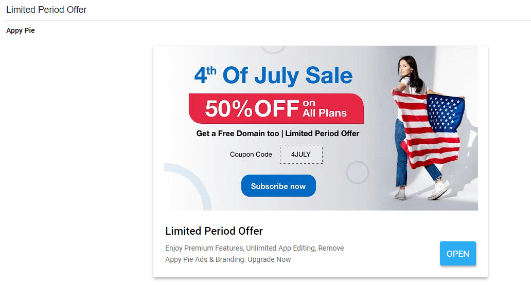 Çoğu marka, belirli kampanyalar için açılış sayfaları oluşturur. Örneğin, Appy Pie'den aldığım yeni bir e-posta: