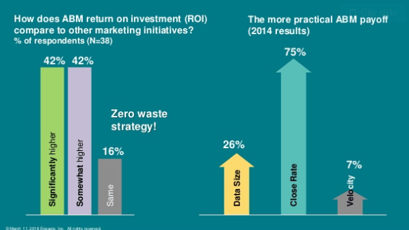 Engagio, bu yaklaşımı "mızrakla balık tutmak" olarak adlandırıyor ve pazarlamacıların %84'ünün ABM'yi diğer pazarlama yaklaşımlarından daha etkili bulduğunu söylüyor.