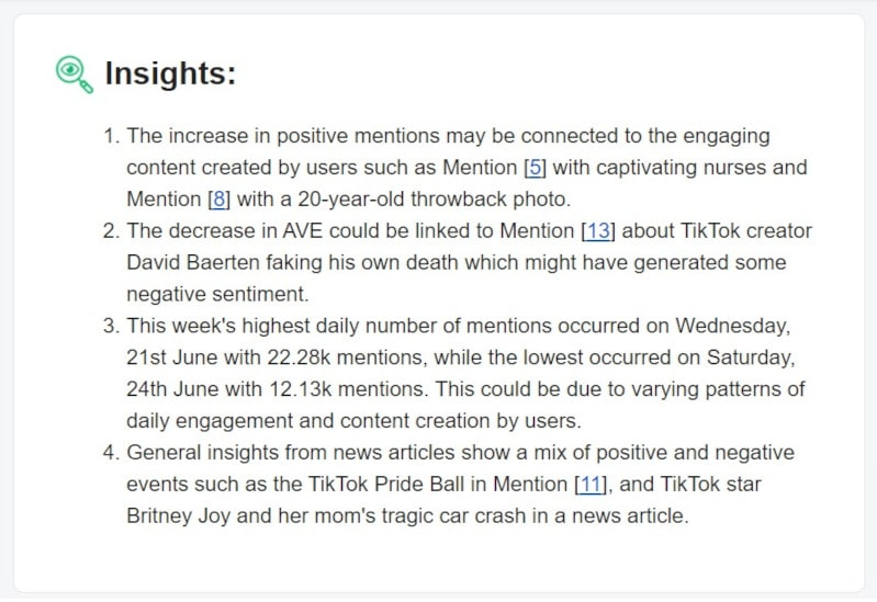 Ek olarak, bahsetme hacmini, erişimi ve duyarlılığı gösteren bir grafik vardır.