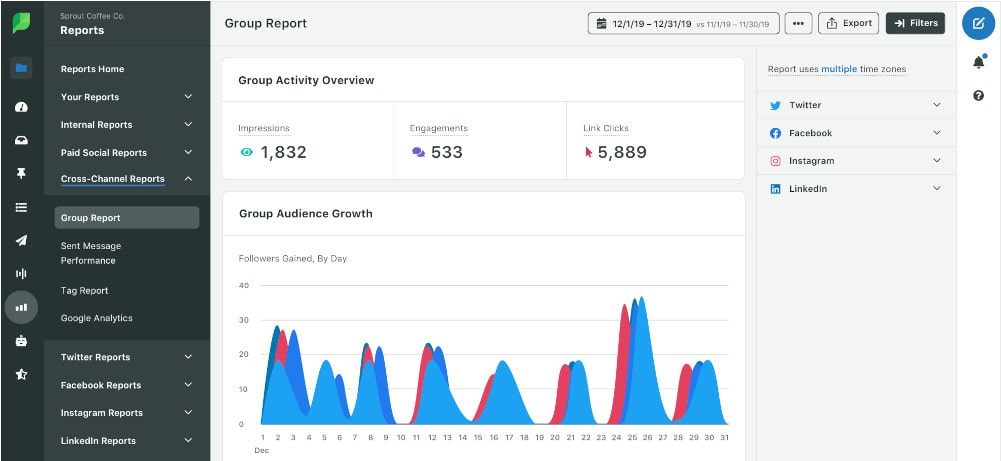 Sprout Social, bir sosyal dinleme ve sosyal medya yönetim yazılımıdır. Araç, Twitter, Facebook, Instagram, YouTube ve LinkedIn gibi en önemli sosyal medya platformlarını destekler.