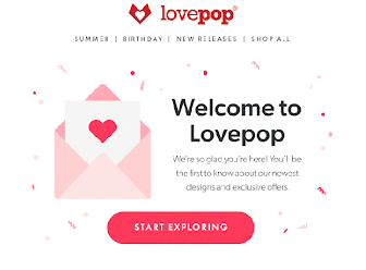İşte sanatsal kart satıcısı Lovepop'tan başarılı bir hoş geldiniz e-postası örneği. Mesajın üst kısmında, yeni müşterileri alışverişe başlamaya davet eden web sitesine bir bağlantı içeren kısa ve basit bir teşekkür mesajı bulunur. Listede olmanın yararları hakkında bilgi edinmek için tüm e-postayı kaydırmak istemeyen herkes için etkili bir seçenektir.