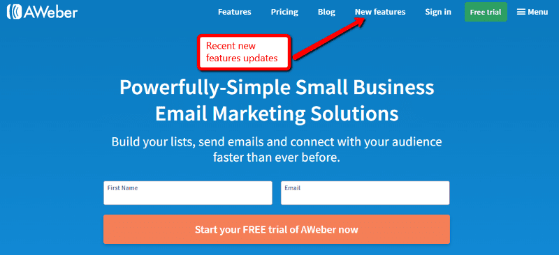 Örneğin, e-posta pazarlamanız için AWeber kullanıyorsanız , yazılımlarının yeni yayınlanan güncellemelerinin keyfini çıkarırsınız.
