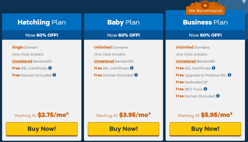 Abonelik planınıza bağlı olarak farklı hizmetler alırsınız. Örneğin, burada Hostgator web barındırma hizmetlerine ve fiyatlandırma modeline bir örnek verilmiştir.