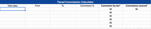 Satış Komisyonu Hesaplayıcımız , her bir komisyon yapısı türü için toplam ücret tutarını hesaplamak için önceden programlanmış bir elektronik tablo sağlar.