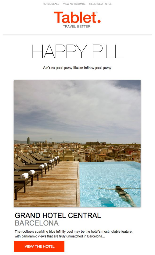 Ek olarak, anahtar kelime kullanıcılarının eylemlerine ilişkin belirli bir paradigma vardır – genelleştirilmiş anahtar kelimeleri araştıranların (“tatil” gibi) herhangi bir şey satın alma olasılıkları, istekleri belirtilenlere (“Busan, Güney Kore'de tatil”) göre daha düşüktür. E-posta bültenine uzun kuyruklu anahtar kelimeler eklemek, web sitenizde sunulan ve e-postalarınızda sunulan içeriğin uyumlu olmasını ve benzer bilgiler sunmasını sağlamaya yardımcı olur. Örneğin, Tablet'in okuyucuları teklifleri hakkında bilgilendirme yaklaşımına bakın.