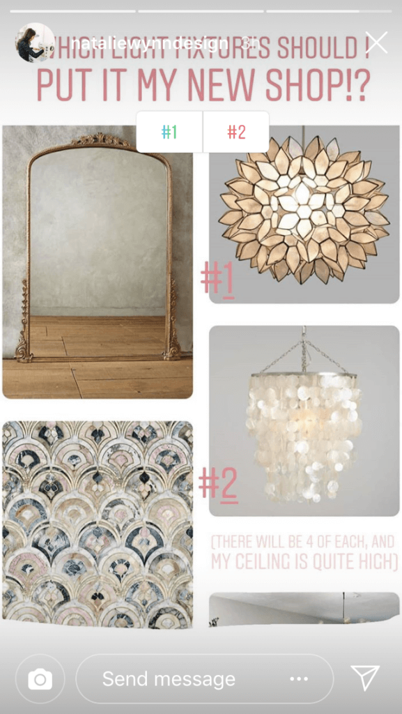 Örneğin, Utah merkezli gelin tasarımcısı Natalie Wynn, takipçilerinden Story Polls'u kullanarak bir dekor kararı vermesine yardım etmelerini istedi.