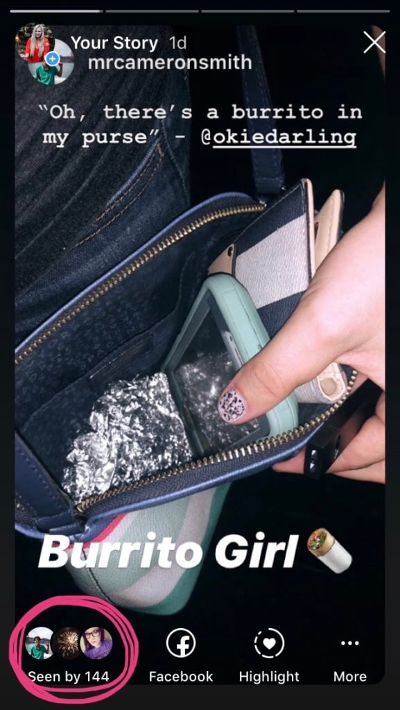 Aşağıda hesabımdan yeni bir Hikaye yazısı var. (Not: Çantamda sık sık burrito bulmuyorum. Freebirds Burritolar gerçekten büyük ve bir oturuşta bitirmesi zor!)