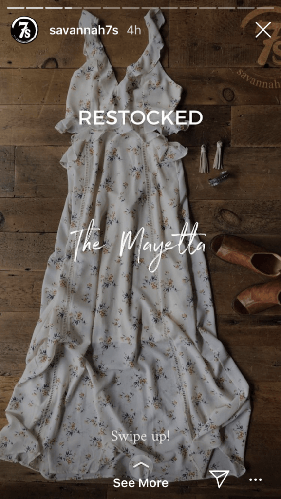 Örneğin, @savannah7 moda hesabı, bu Hikayeyi bir stok ve öne çıkan elbisenin bağlantısını duyurmak için kullandı.