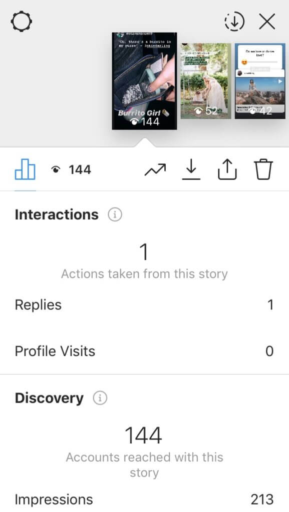 Bu simgeye dokunursanız, Story Insights'ınızı içeren bir açılır ekran belirecektir!