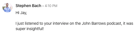 Ev sahibi ile ilişkiler kurabilirsiniz. Sektörümüzdeki insanlarla olan en iyi dostluklarımın çoğu bir podcast röportajıyla başladı. Kahve içmeleri veya bir aramayı yanıtlamaları için onlara rastgele e-posta göndermekten daha kolay bir buluşma yöntemidir.