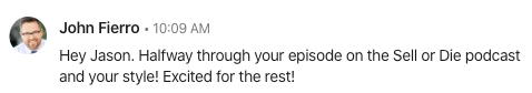 İşte Sell or Die'daki röportajı getiren e-posta! Jeffrey Gitomer ve Jennifer Gluckow ile.