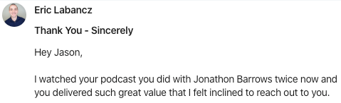 2014'ten 2016'ya kadar bir podcast'e ev sahipliği yaptım, bu nedenle sosyal kanıt oluşturmak için bir araç olarak podcasting mantıklı geldi. Ne zaman biri benimle başka bir podcast'te röportaj yapsa, bir veya iki müşteri seçtik ve e-posta listemizi büyüttük.