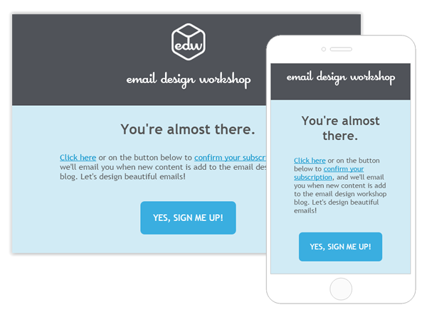 Çoğu e-posta hizmeti sağlayıcısı, yeni abonelerin bir posta listesine kaydolmak için iki aşamalı bir süreçten geçmesini gerektirir. Çift giriş veya onaylanmış giriş olarak adlandırılan süreç yaygın bir işlemdir ve şöyle devam eder: Bir okuyucu web sitenizdeki bir kayıt alanına e-posta adresini girdikten sonra, kendisine onay vermesini isteyen bir e-posta alır. abone olma arzusu. Örneğin, Email Design Workshop'un abonelik onay isteği mesajı şuna benzer.