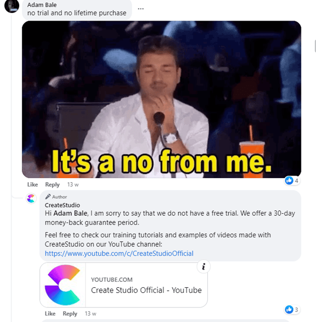 Bazen reklamlar bölümündeki yorumcular birbirleriyle bir satın alma konusunda konuşabilir veya hayati satış noktalarını kaçırabilir. CreateStudio, faydalı ipuçları sunmak için reklamlarının yorumlar bölümüne atladı.