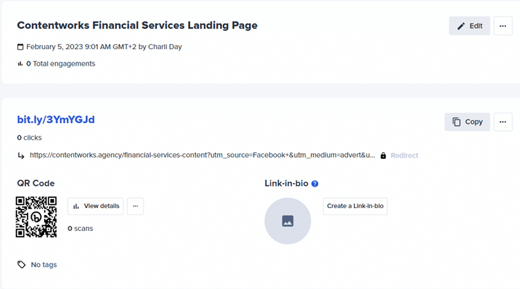 Kısaltılmış URL'nizi oluşturduktan sonra sosyal medya gönderilerine kopyalayabilir, reklamlarda kullanabilir ve hatta QR kodunu broşürlere ve kartvizitlere ekleyebilirsiniz. Orijinal uzun URL'miz, tıklanabilir ve izlenebilir olan bit.ly/3YmYGJd olur.