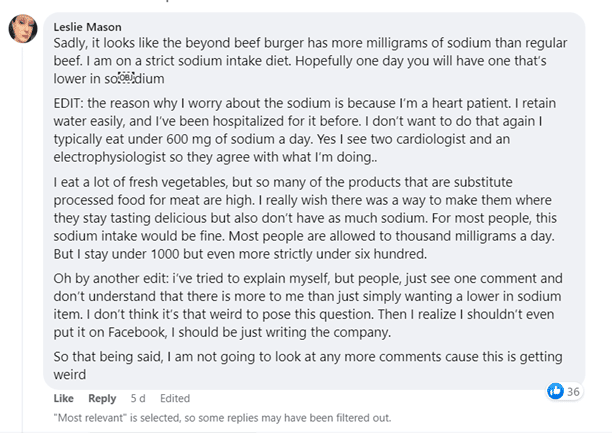 Serbest tartışmanın büyük bir hayranıyım, bu yüzden sosyal medyada markaların helikopter sansürü görmekten hoşlanmıyorum. Bununla birlikte, Beyond Meat gibi çok fazla muhalefetle karşılaşan markaların karanlık sosyal ortamlarını izlemesi gerekiyor. Gruplarda ve bireysel gönderilerde atlamak ve düzeltmek isteyebilecekleri pek çok eleştiri var. (Müdahale etmemenin kasıtlı bir seçim olabileceğinin farkındayım)