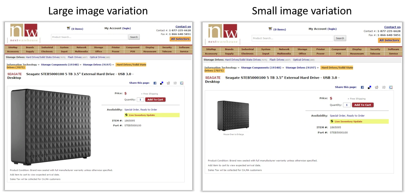 CXL 研究所的团队希望对这一最佳实践进行测试。 他们进行了两项不同的研究,一项是探索产品照片尺寸如何影响参与度,另一项是探索产品照片尺寸如何影响价值感知。