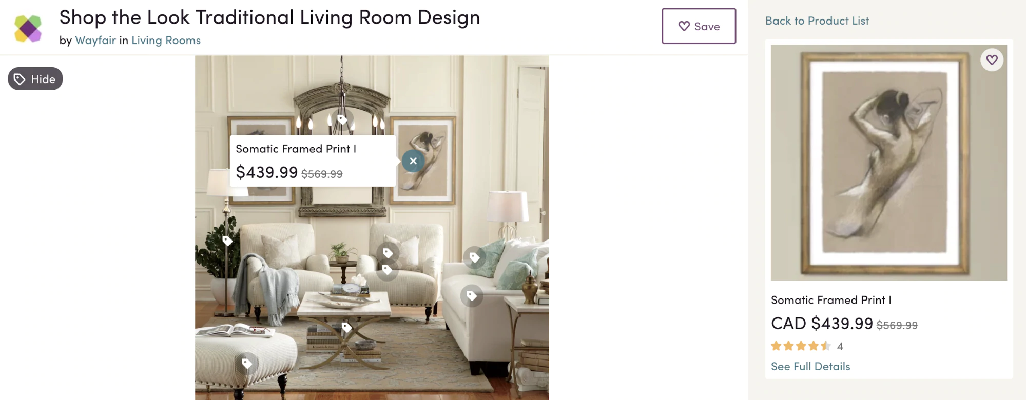 例如,Wayfair 标记了他们鼓舞人心的产品照片以关闭启发-购买循环: