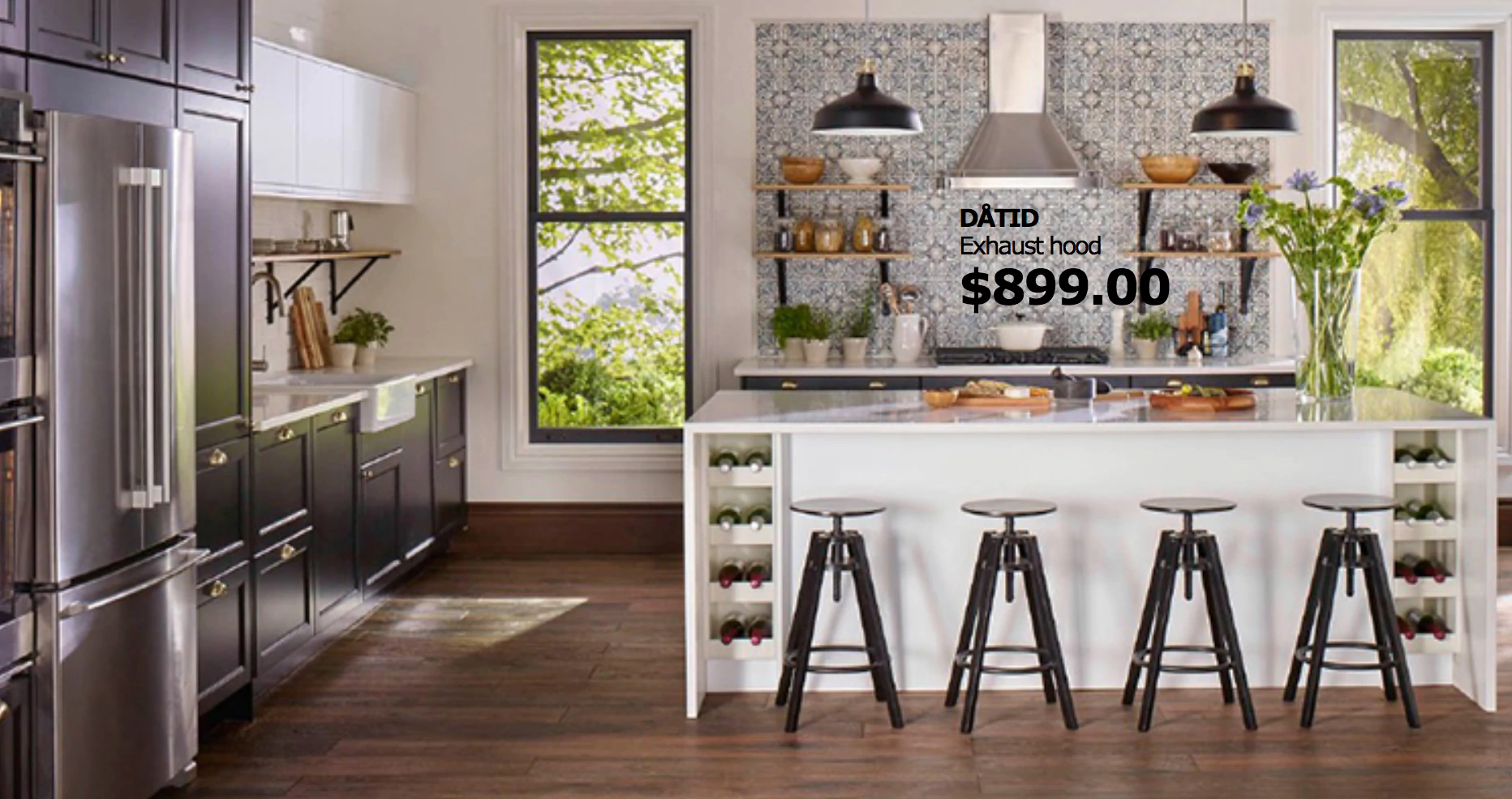 这张照片中的主要产品是排气罩,对吧? 这是唯一有标签的产品。 但整个厨房里摆满了宜家的产品。