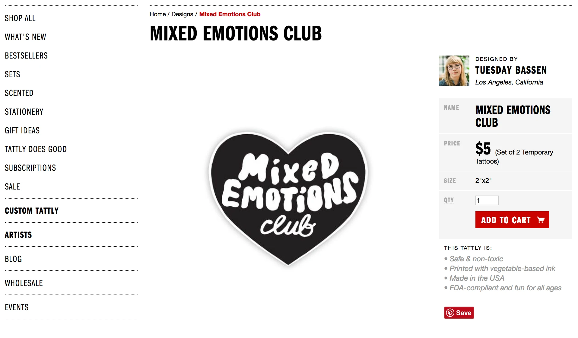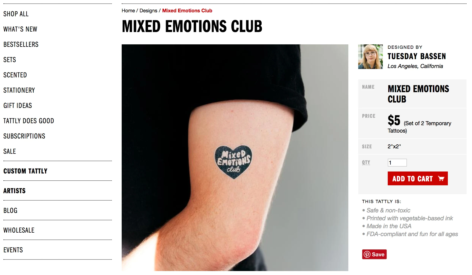 以 Tattly 为例。 这是一个“混合情绪俱乐部”临时纹身: