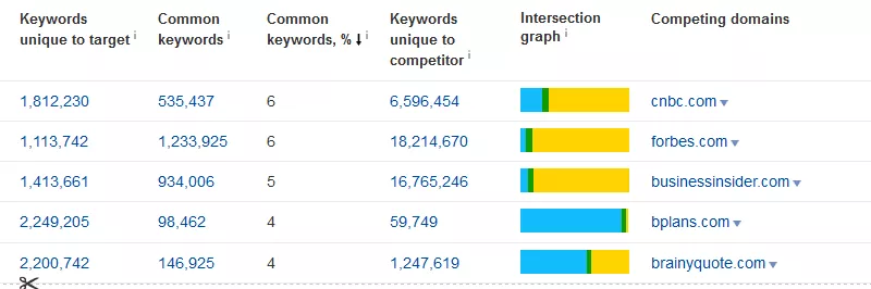 列出你的竞争对手。 他们中的一些人将拥有比其他人更高的域权限。 您需要过滤掉与您的网站具有相当权限的那些。