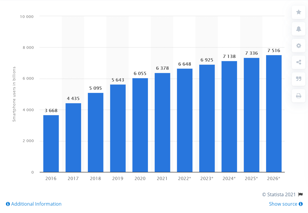 根据Statista 的一项研究,目前有超过 63 亿人使用智能手机。 到 2026 年,全球智能手机用户数量应增加 15 亿。 因此,拥有适合移动设备的网站不再是一种选择。 必须的。